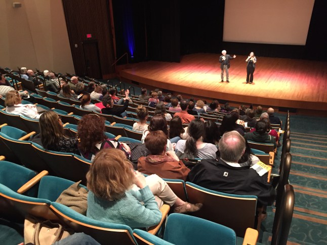 There is an unusual format for the evening that consists of a panel discussion before the screening and Q&A afterwards. It’s quite a group of panelists: William Kepner, CEO & President of United Disability Services; Melissa Hawkins, Executive Director of the Disability Empowerment Center; Jan Bechtel, MU Director of Integrated Studies; and Brian Long, Lead Coordinator, Berks/Lancaster/Lebanon LINK to Aging and Disability Resources. ASL interpretation is provided by Laura Hoffer. Each speaks briefly about their perspective on disability and caregiving and makes suggestions about what to look for in the film. It’s a really nice way to set up the screening and leaves me to handle the Q&A afterwards. The audience is very enthusiastic and appreciative, as am I.